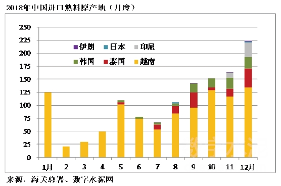 3、熟料進口量來源國主要來自越南、泰國和韓國