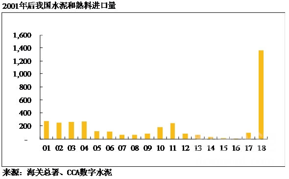 2017年以前,中國水泥年進口量最多不到300萬噸,2016年更是達到了歷史低谷的6.5萬噸。但隨著我國沿海地區(qū)熟料價格高企,2018年以水泥熟料為主要產(chǎn)品的進口量爆發(fā)性增長,僅當年的進口量就達到1363萬噸,比2005-2017年13年進口量的總和還多。